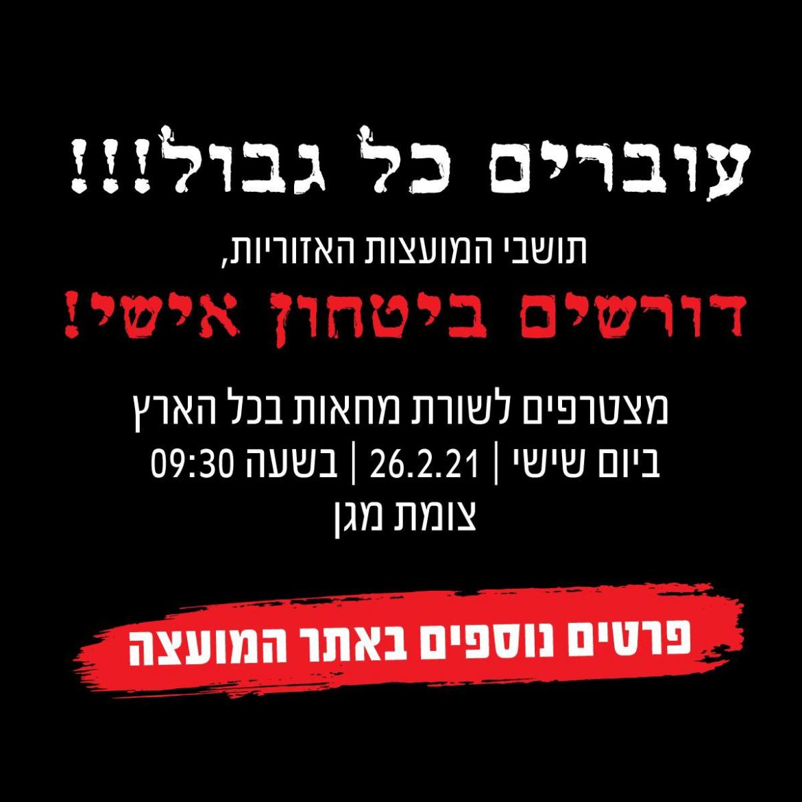 ההפגנה תתקיים במקביל בכל הארץ ובאשכול בצומת מגן - ביום שישי 26.2.21 בשעה 9:30 בבוקר