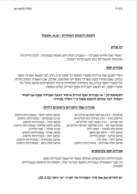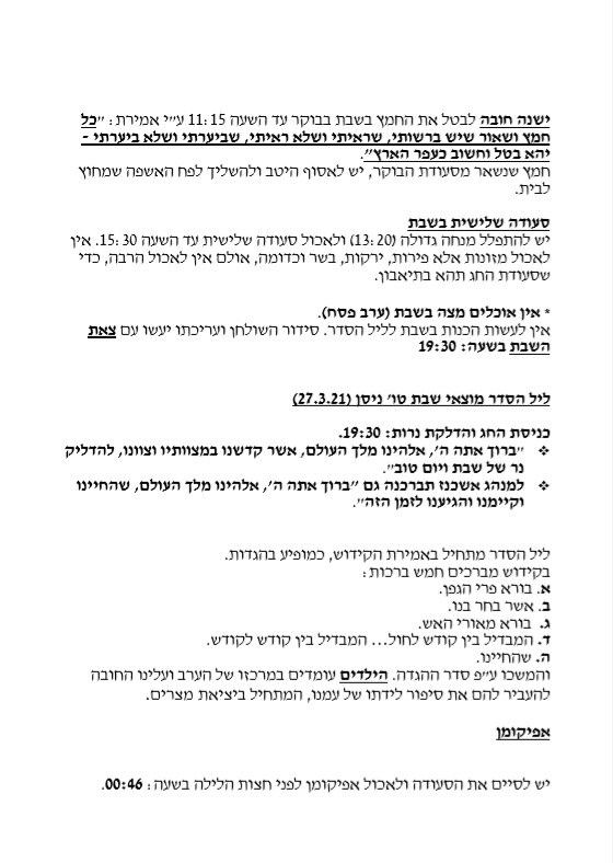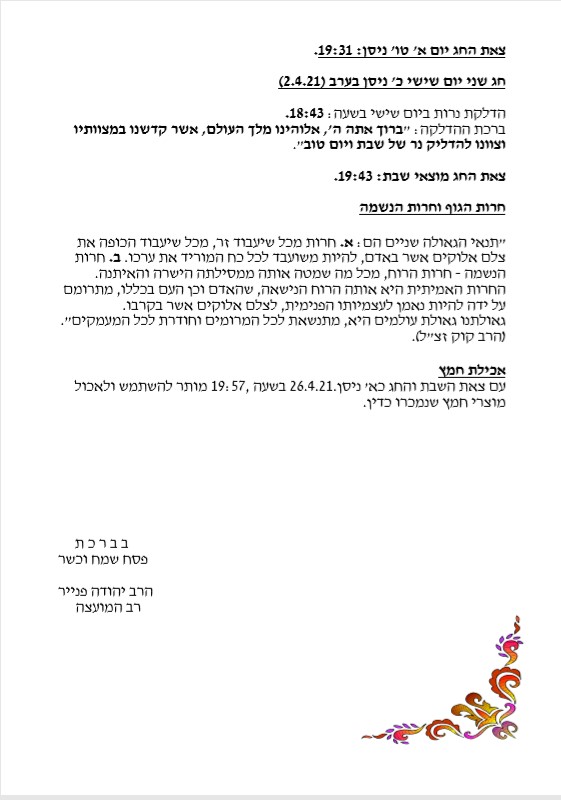 הנחיות מרבנות המועצה לחג הפסח