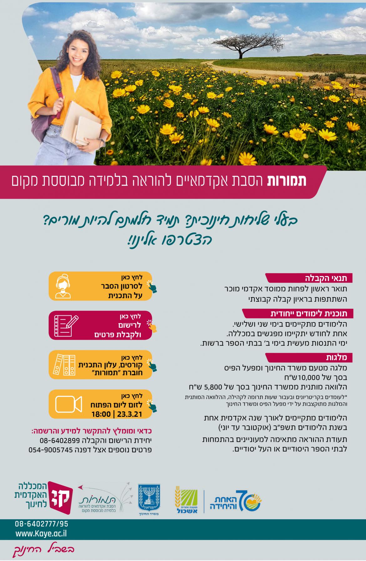יום פתוח למתעניינים ביום שלישי 23.3.21 בשעה 18:00 בזום.