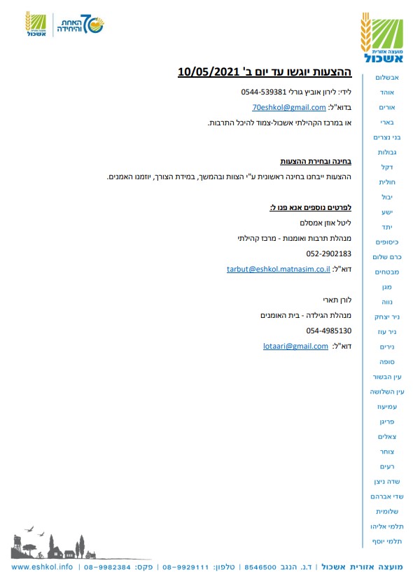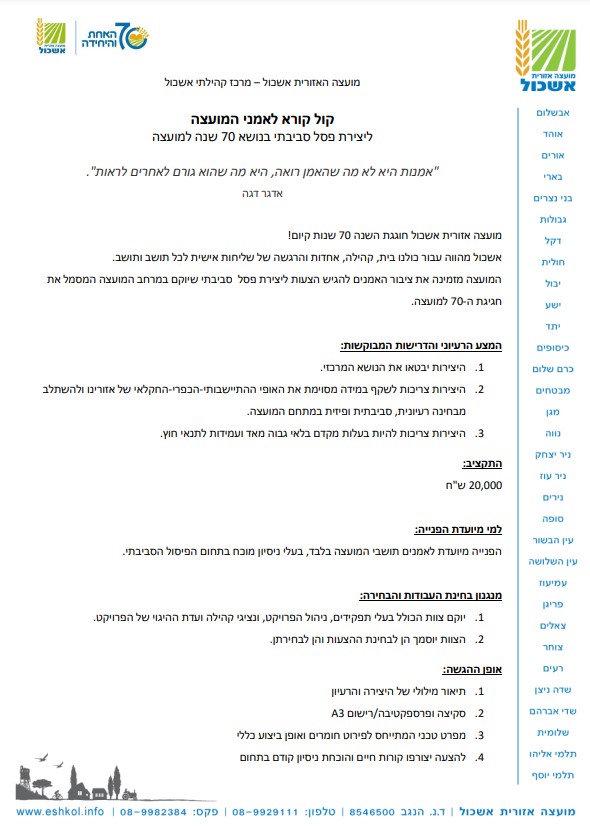 קול קורא לאמני המועצה ליצירת פסל סביבתי בנושא 70 שנים למועצה