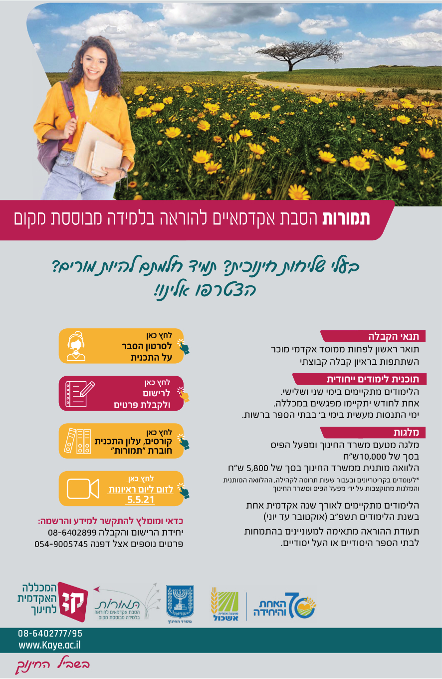 אשכול יוצאת לצאת לדרך עם תוכנית ׳תמורות׳ להסבת אקדמאים להוראה, בשיתוף מכללת קיי.
