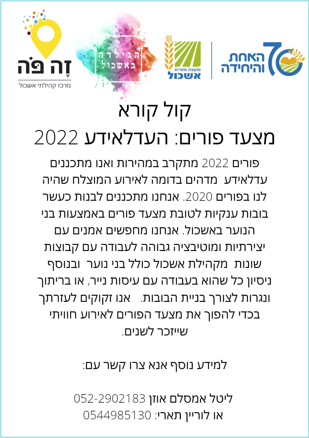 כל אומן יקבל קבוצת מהקהילה וביחד יצרו מיצג שמח למצעד!