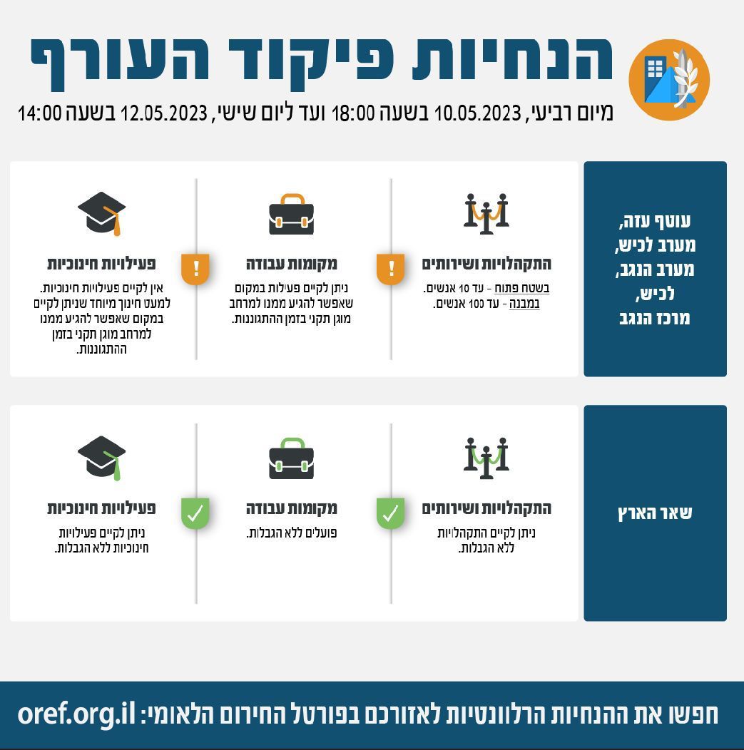 הודעת מועצה אזורית אשכול 10.5.23 | 18:15 - עדכון הנחיות עד ליום שישי ה-12.05.23