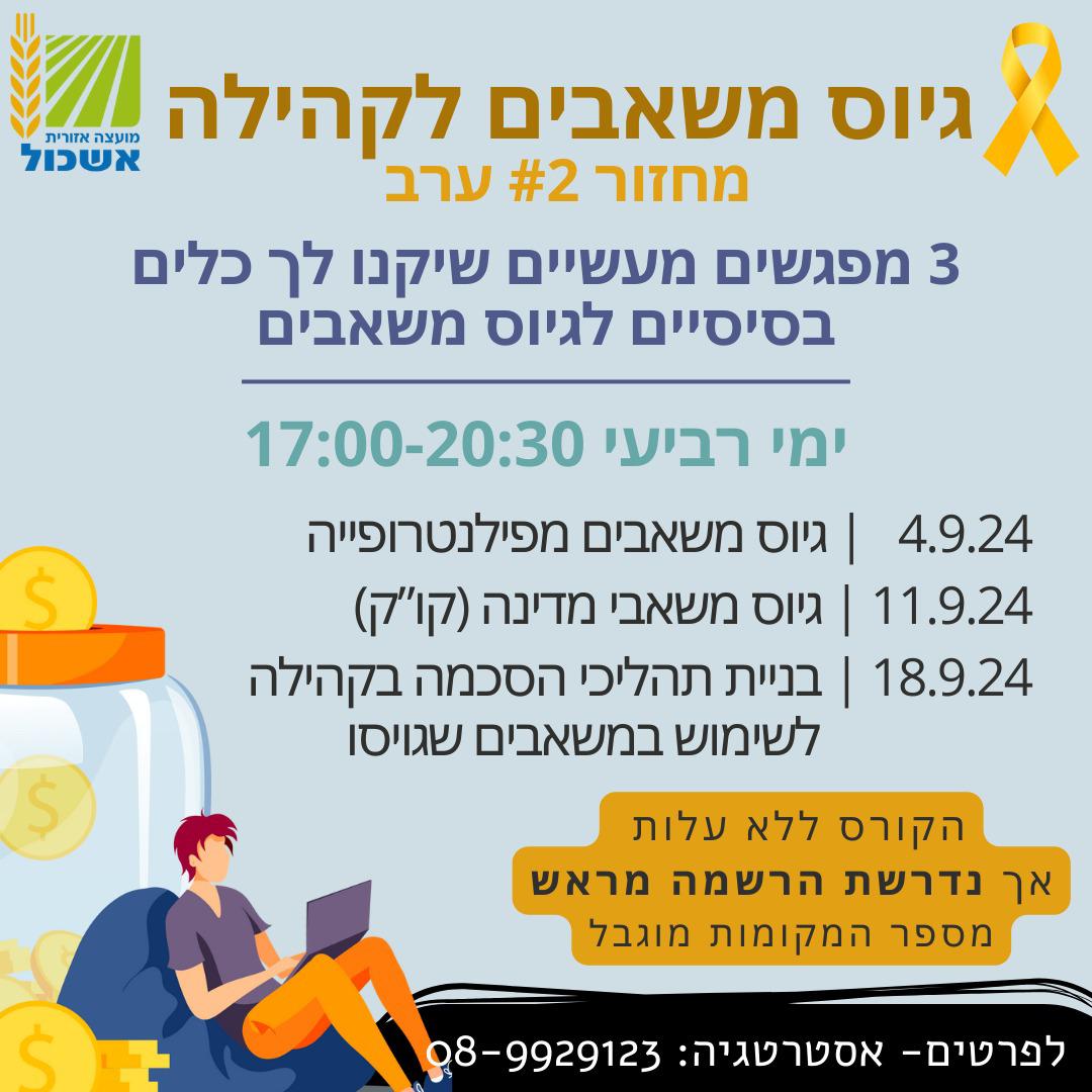 לאור ההצלחה והדרישה הגבוהה - אנו פותחים מחזור נוסף של תוכנית ״גיוס משאבים לקהילה״, הפעם בשעות הערב.