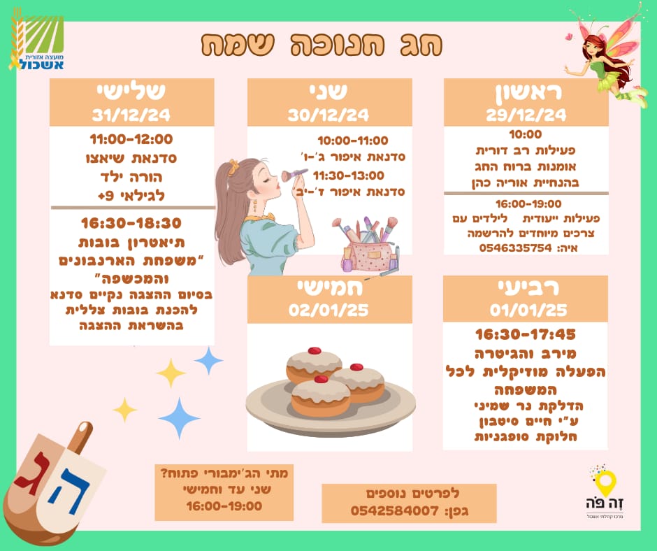בנוסף הדלקת נר שמיני ע"י חיים סיטבון וחלוקת סופגניות.