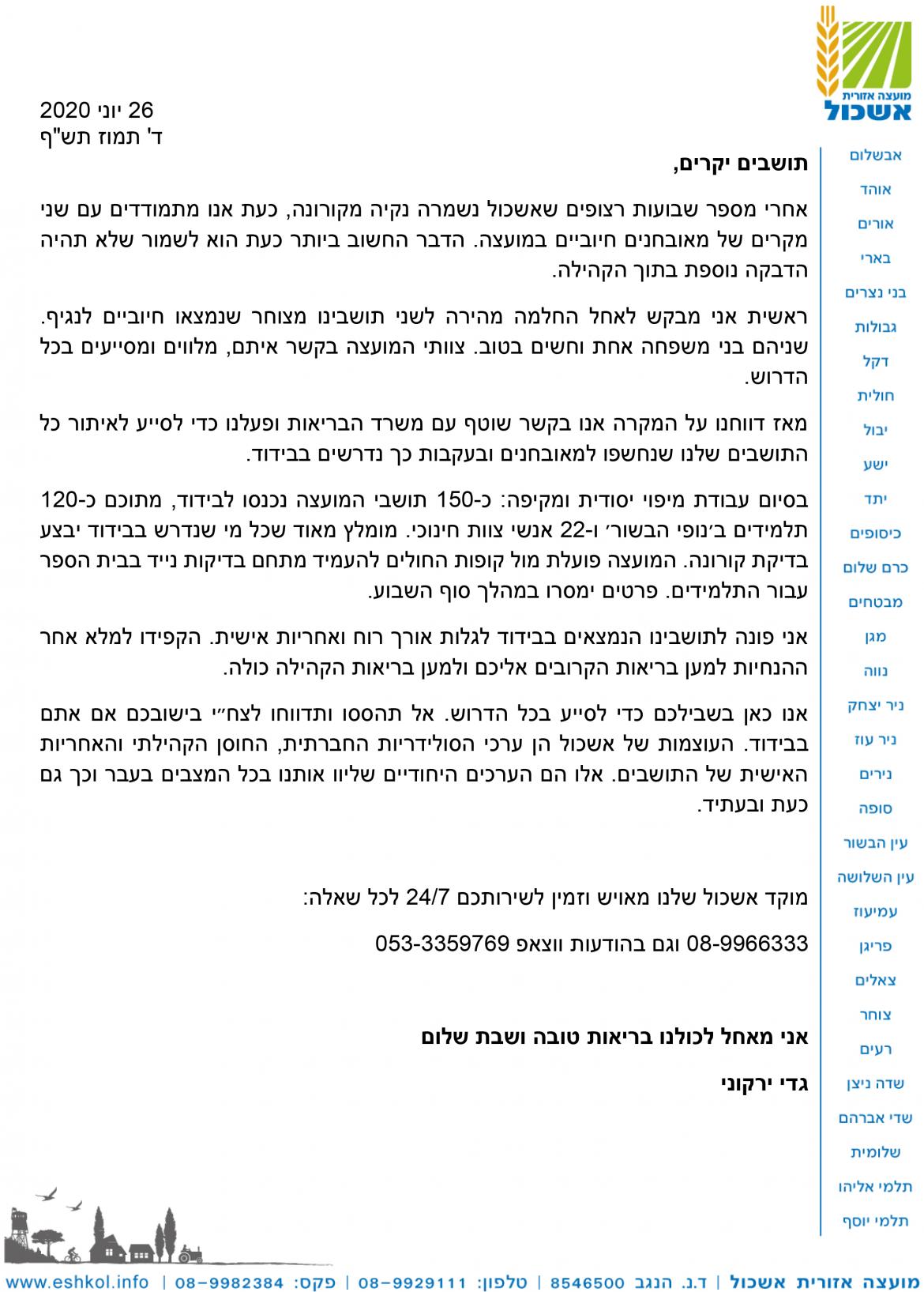 עדכון מראש המועצה - שישי, 26.06