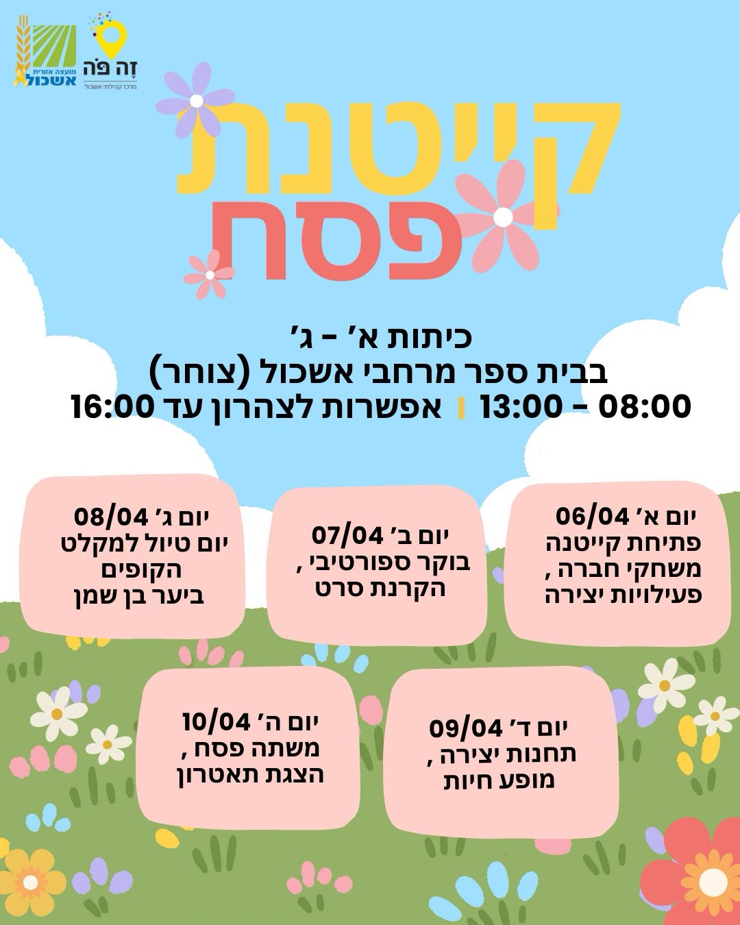 הקייטנה תפעל בביה״ס מרחבי אשכול (שבצוחר)
