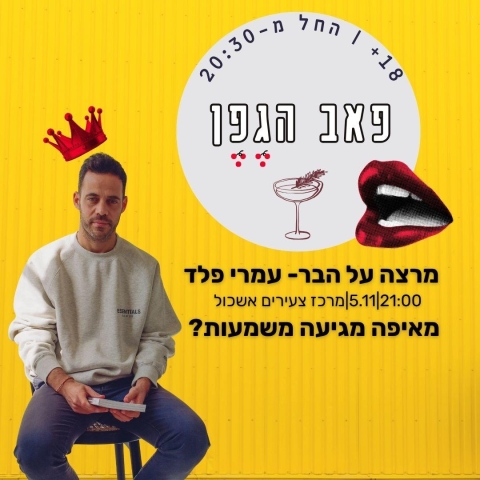 05 נובמברפאב הגפן מארח את עמרי פלד – “מאיפה מגיעה משמעות?”מרכז צעירים -