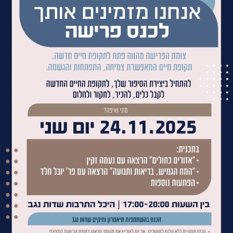 24 נובמברכנס הפורשים השנתי של אפ 60+ לכלל תושבי רשויות הנגב המערביהיכל התרבות שדות נגב -