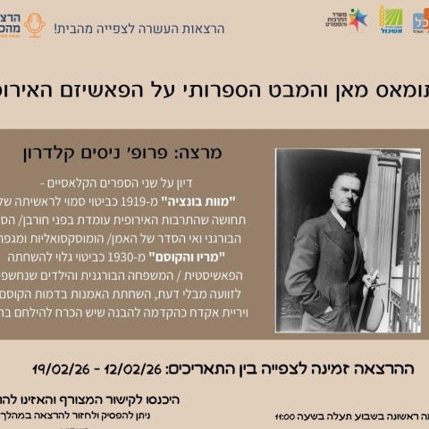 12 פברוארהרצאות מהכורסא: תומאס מאן והמבט הספרותי על הפאשיזם האירופיזום -