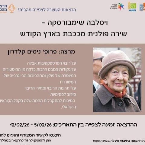 05 פברוארהרצאות מהכורסא : ויסלבה שימבורסקה – שירה פולנית מככבת בארץ הקודשזום -