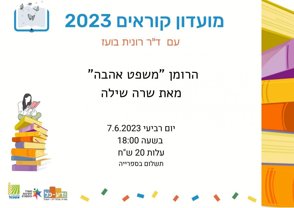 מועדון קוראים 2023 - עם ד"ר רונית בועז - "משפט אהבה" מאת שרה שילה