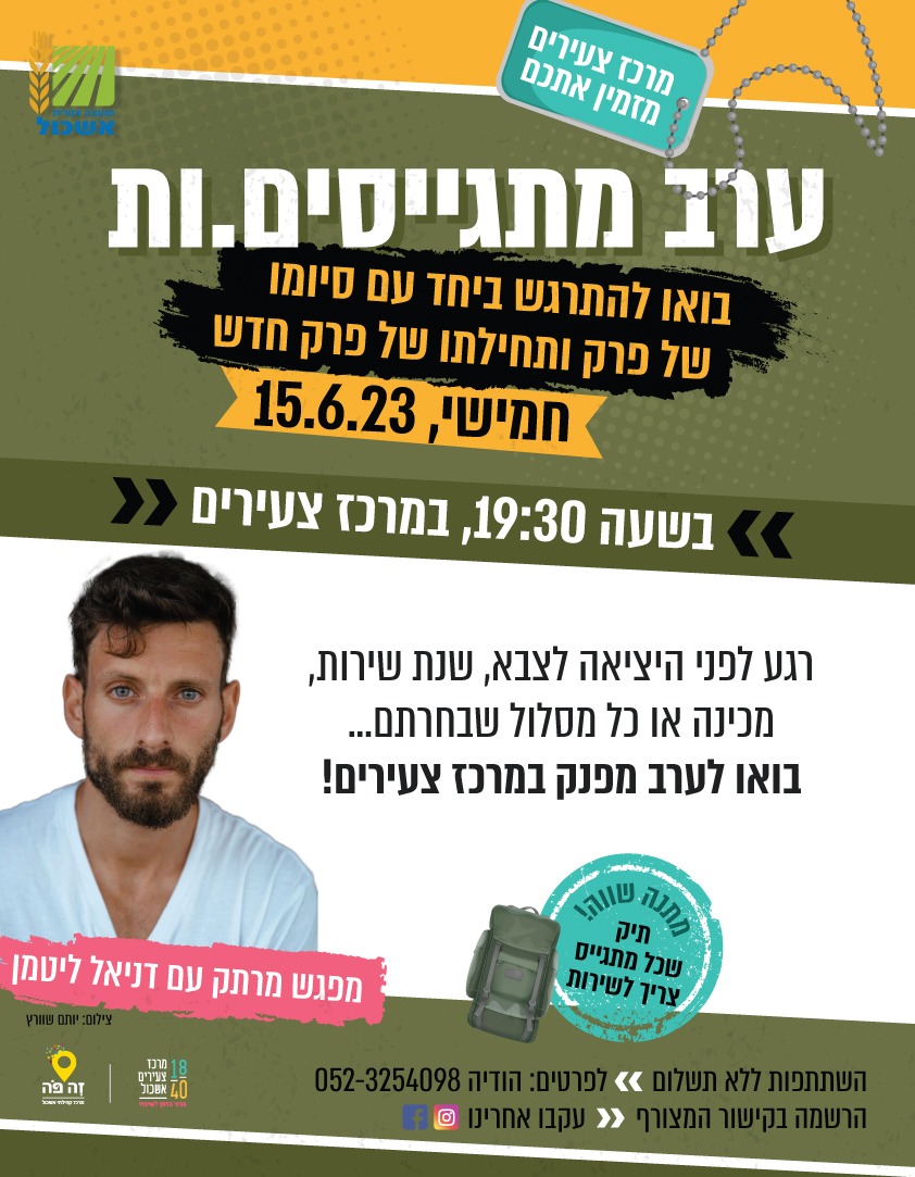 הוסף ללוח שנה 2023-06-15 00:00:00 2023-06-15 01:00:00 Asia/Jerusalem ערב מתגייסים.ות לשכבת יב למידע מלא: https://eshkol.info/events/1060/ מרכז צעירים אשכול