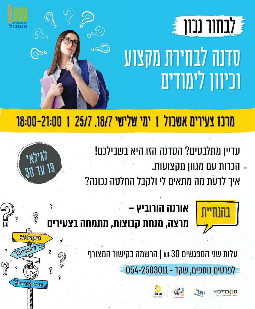 סדנה לבחירת מקצוע וכיוון לימודים