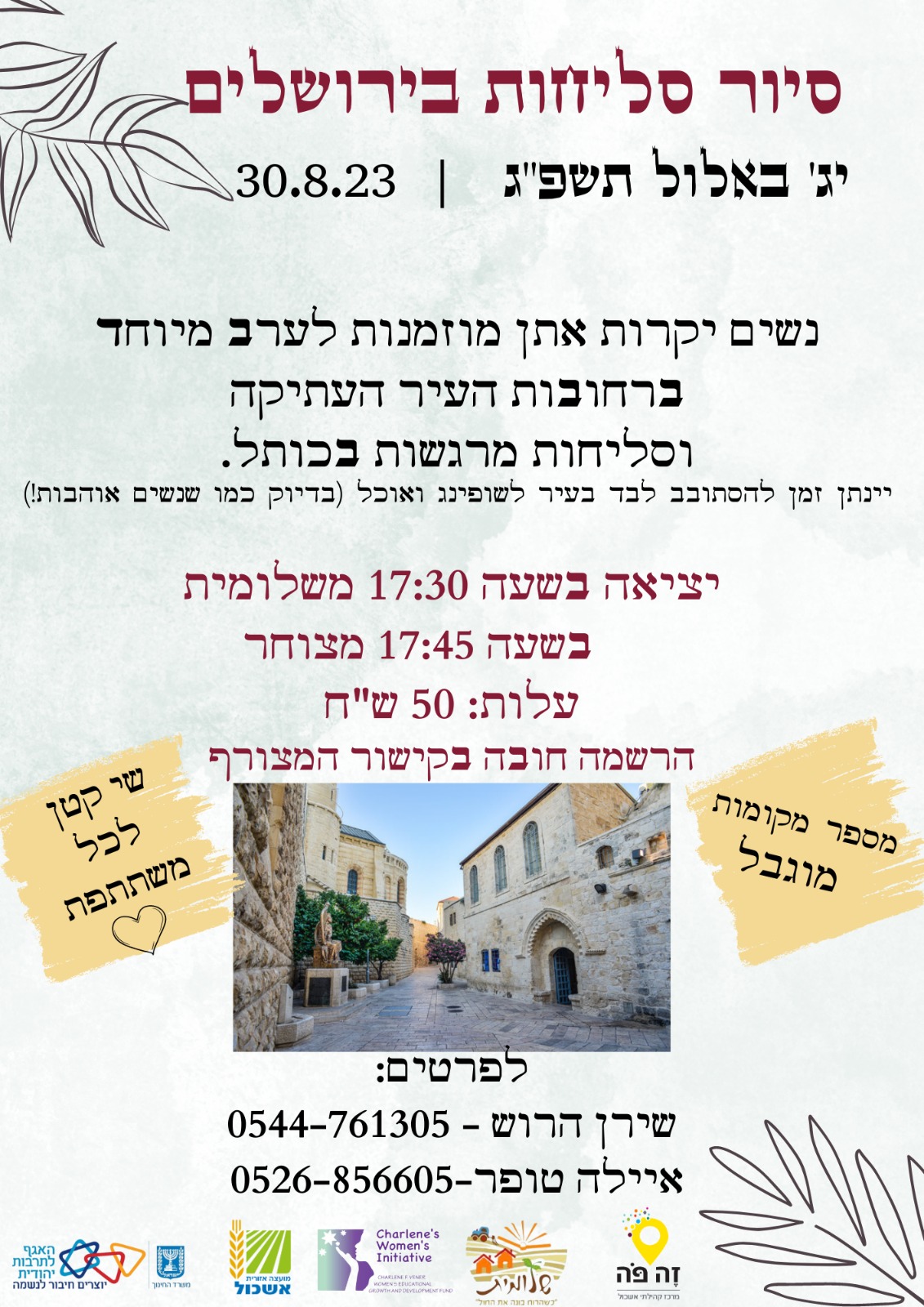 נשים יקרות מוזמנות לערב מיוחד ברחובות העיר העתיקה וסליחות מרגשות בכותל.