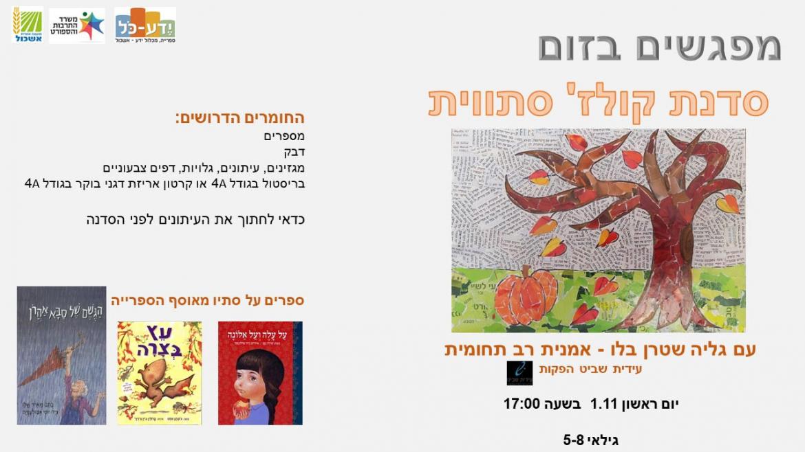 מוזמנים לסדנת יצירה סתווית ביום ראשון 1.11 בשעה 17:00 לגילאי 5-8.