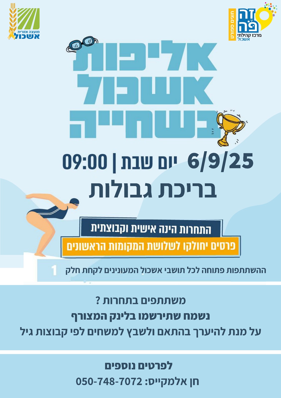 אליפות אשכול בשחייה 2025 - זה הזמן להתחיל להתאמן!