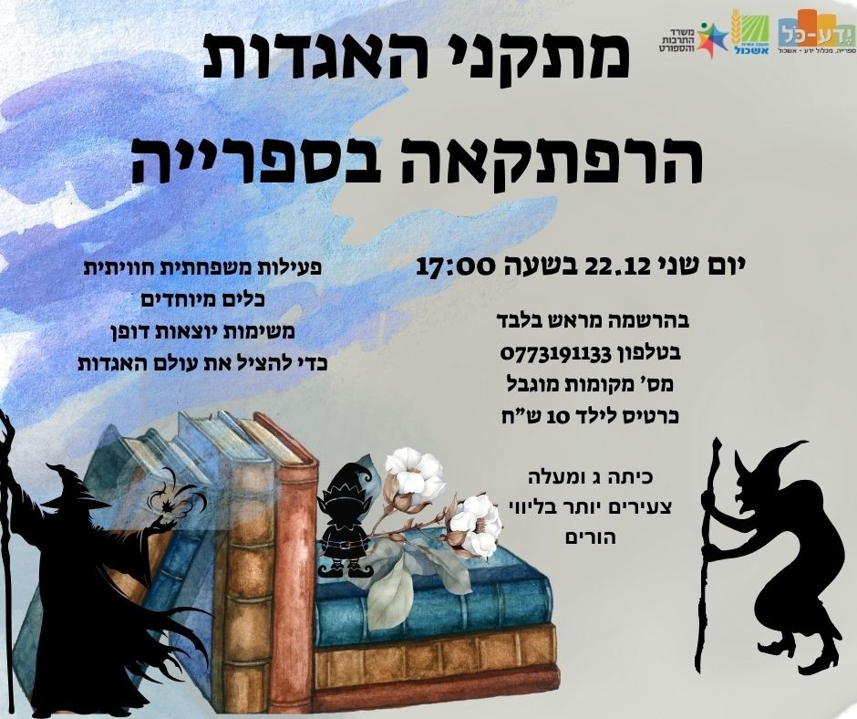 הוסף ללוח שנה 2025-12-22 00:00:00 2025-12-22 01:00:00 Asia/Jerusalem מתקני האגדות - פעילות משפחתית חוויתית למידע מלא: https://eshkol.info/events/1395/ ספריית ידע כל