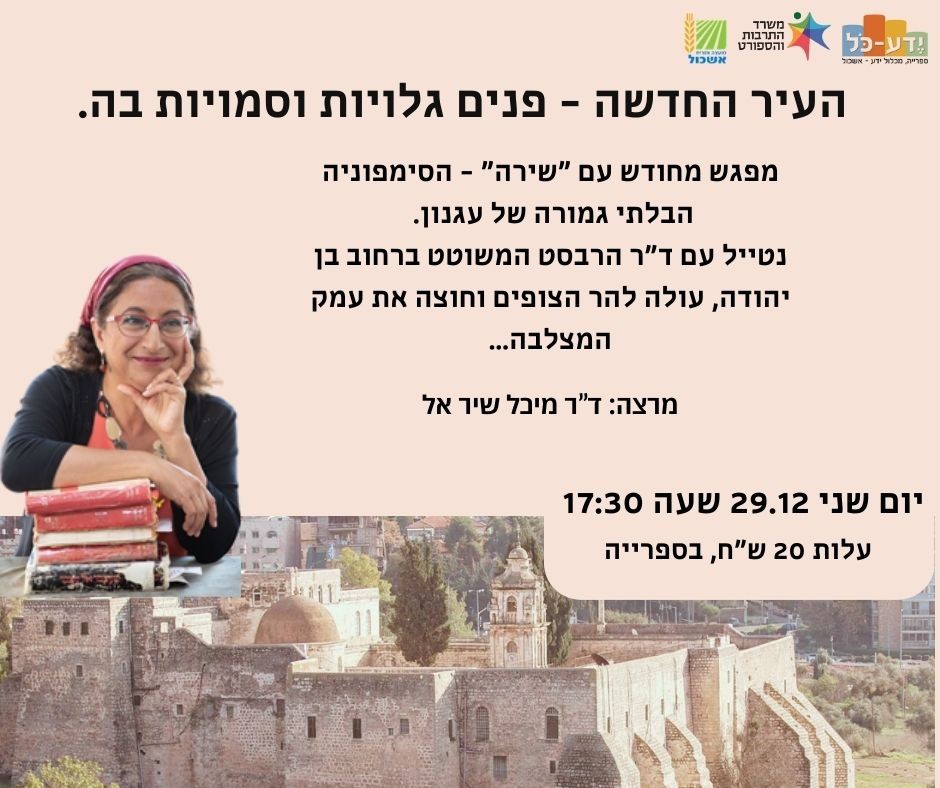 הוסף ללוח שנה 2025-12-29 00:00:00 2025-12-29 01:00:00 Asia/Jerusalem עגנון – עם ד"ר מיכל שיר-אל למידע מלא: https://eshkol.info/events/1396/ ספריית ידע כל