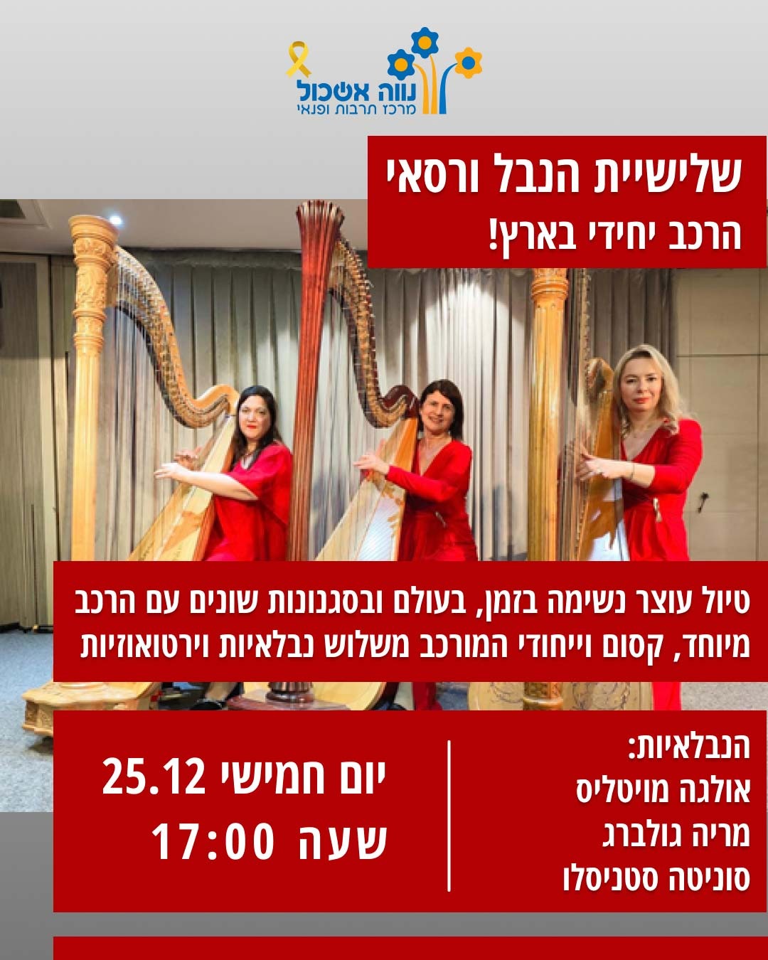 הוסף ללוח שנה 2025-12-25 00:00:00 2025-12-25 01:00:00 Asia/Jerusalem שלישיית הנבל ורסאי במופע מיוחד למידע מלא: https://eshkol.info/events/1412/ נווה אשכול