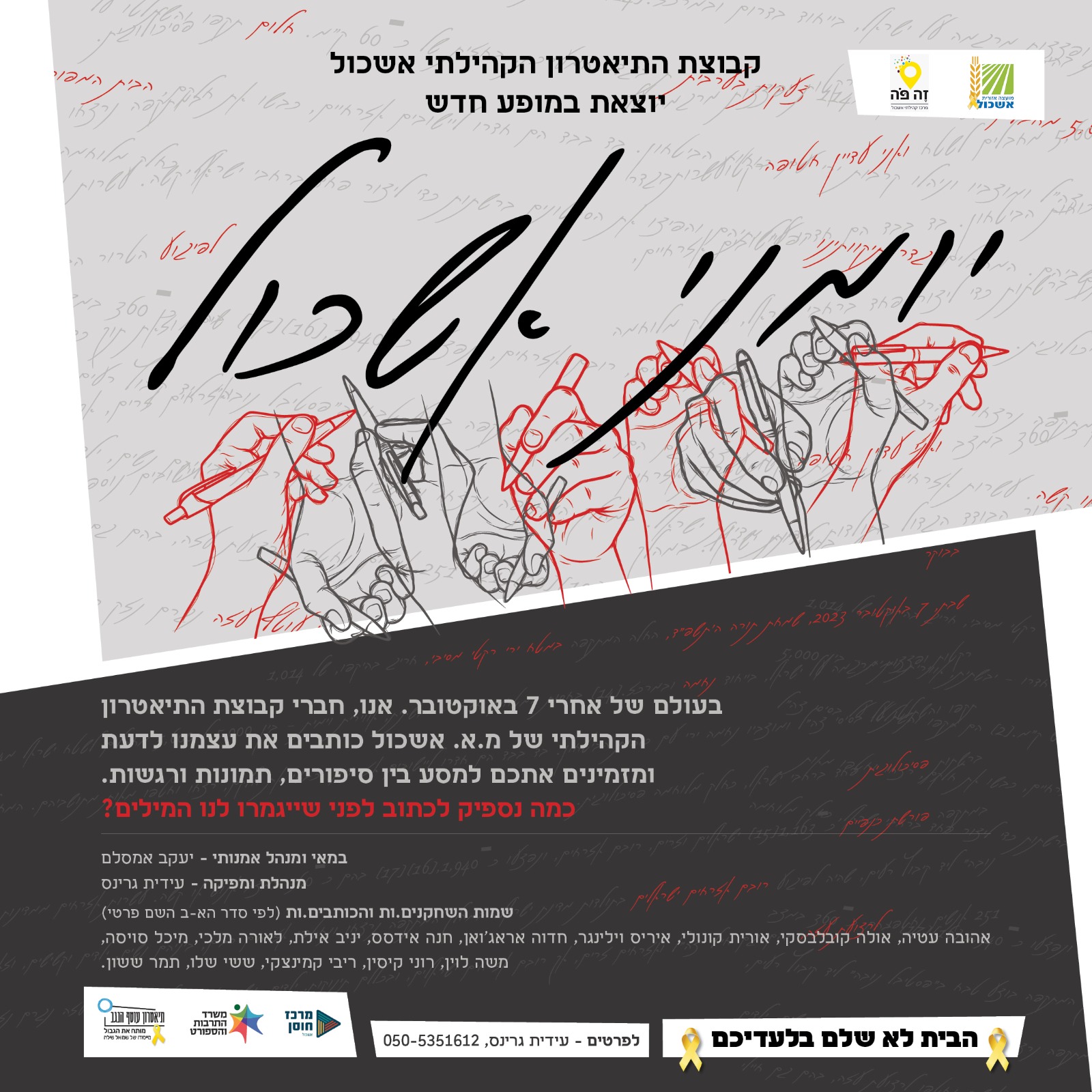 הקבוצה מזמינה את תושבי ותושבות אשכול להצגה יומני אשכול.