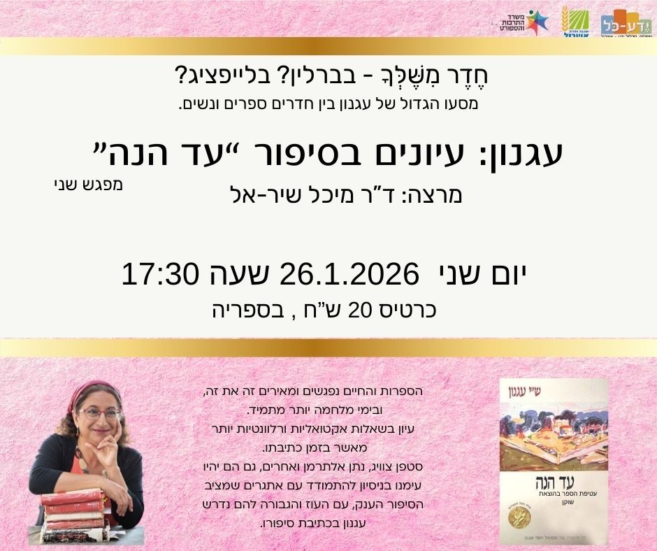 הוסף ללוח שנה 2026-01-26 00:00:00 2026-01-26 01:00:00 Asia/Jerusalem עגנון חֶדֶר מִשֶּׁלְּךָ - בברלין? בלייפציג? למידע מלא: https://eshkol.info/events/1426/ ספריית ידע כל