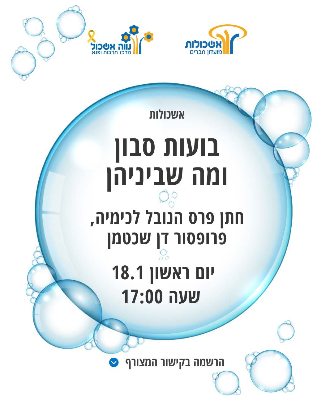 חתן פרס הנובל לכימיה, פרופסור דן שכטמן, מגיע אלינו להרצאה מעניינת על סיפורו האישי במאבקו להכרה מדעית בינלאומית - עד הזכייה בפרסי וולף וישראל לפיזיקה ובפרס הנובל הנכסף.