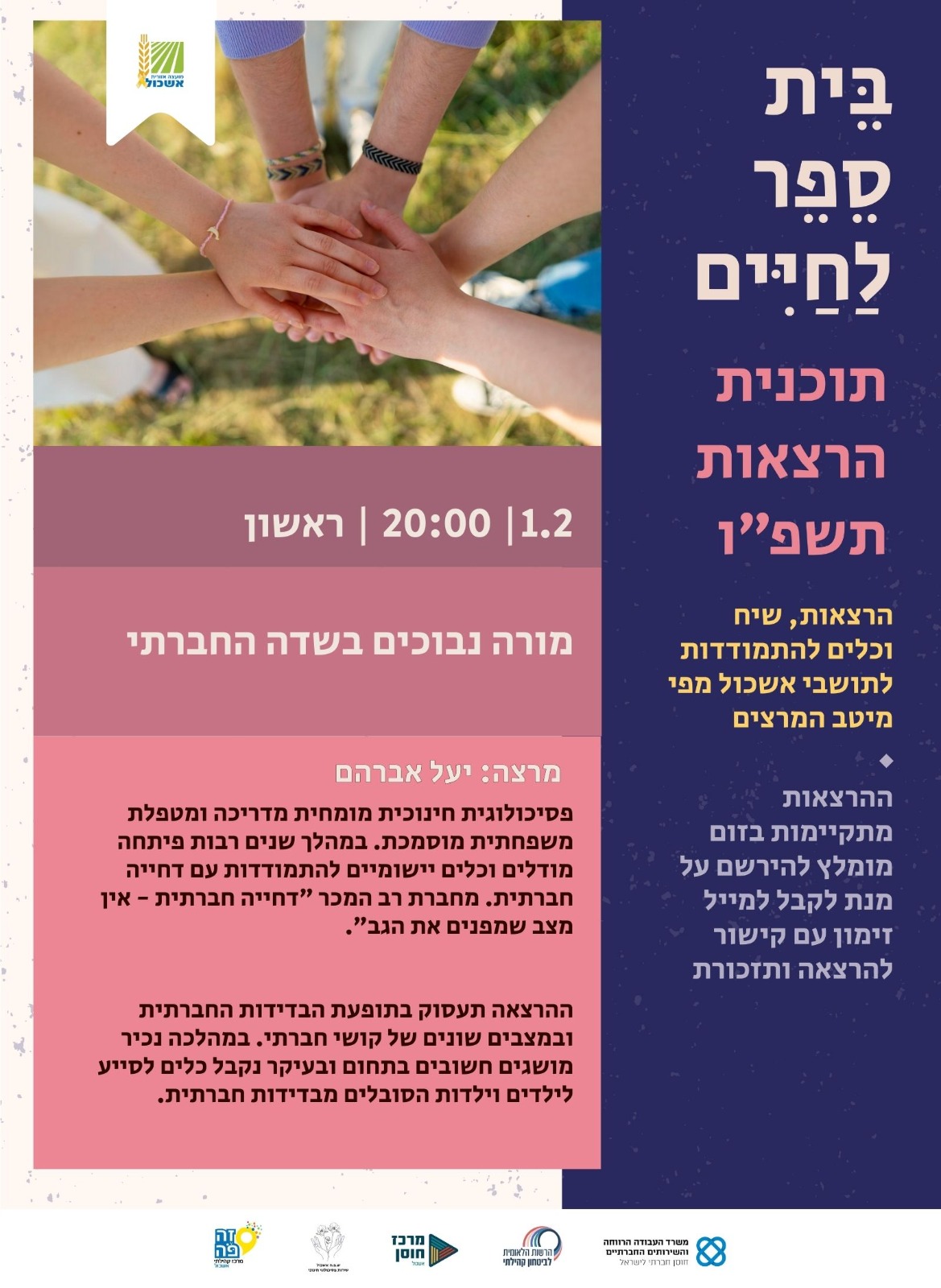 לפרטים נוספים, הרשמה וקישור לזום כנסו לאתר האינטרנט של בית ספר לחיים אשכול