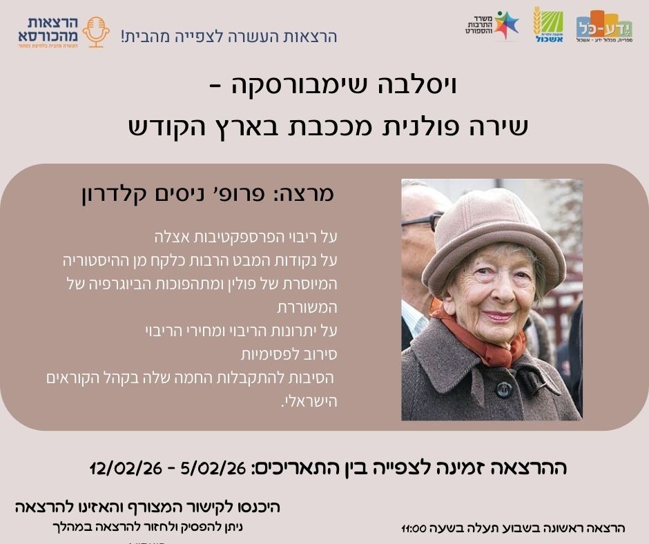 הרצאות מהכורסא : ויסלבה שימבורסקה – שירה פולנית מככבת בארץ הקודש