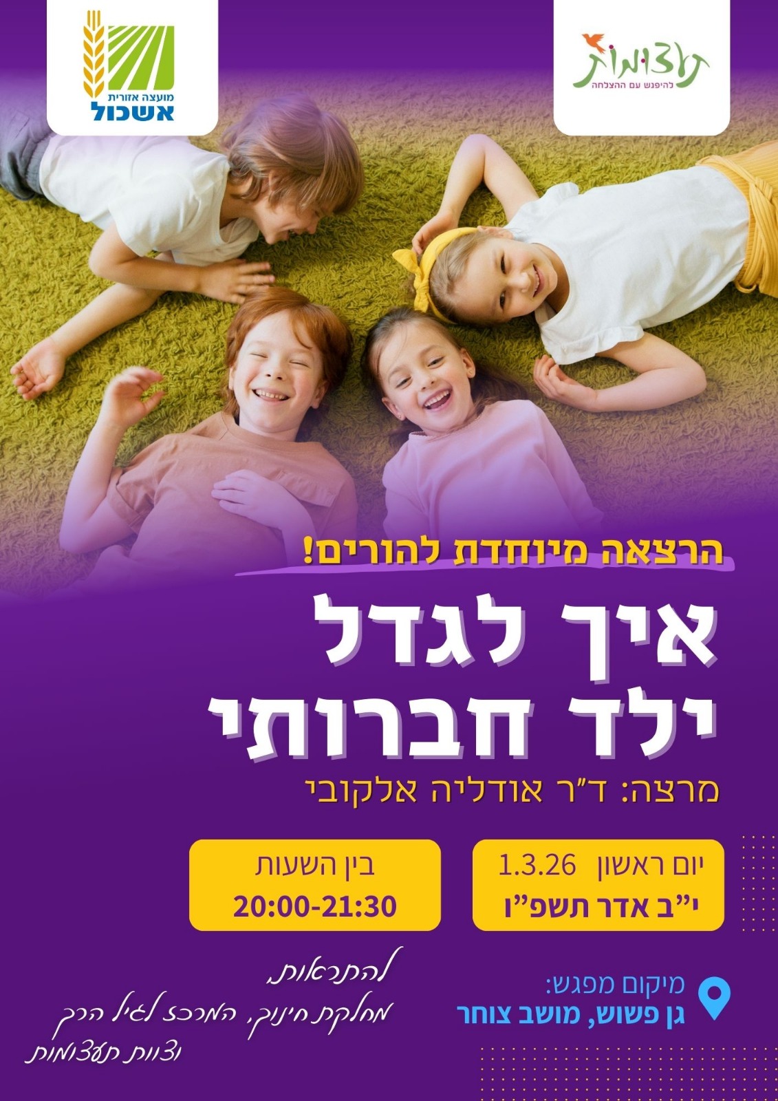 הצטרפו אלינו להרצאה מיוחדת עם ד"ר אודליה אלקובי — מומחית בכישורים חברתיים המתחילים כבר בגיל הינקות.