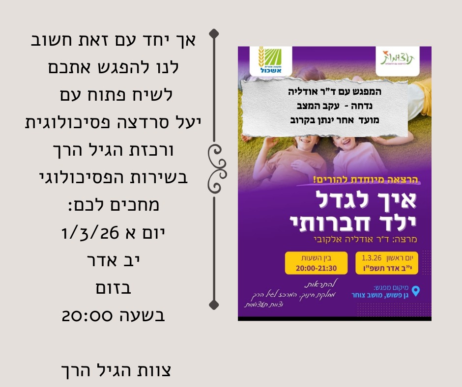 הוסף ללוח שנה 2026-03-01 00:00:00 2026-03-01 01:00:00 Asia/Jerusalem ד"ר אודליה אלקובי | איך לגדל ילד חברותי למידע מלא: https://eshkol.info/events/1477/ זום