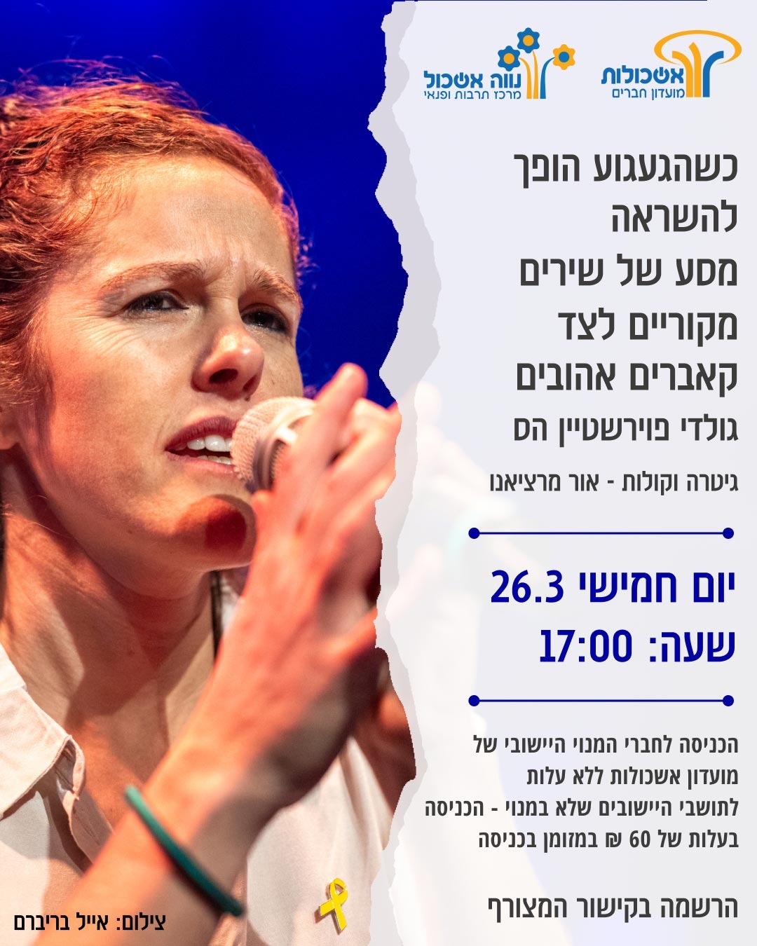 מוזמנים להופעה של גולדי, זמרת יוצרת מקיבוץ נירים.