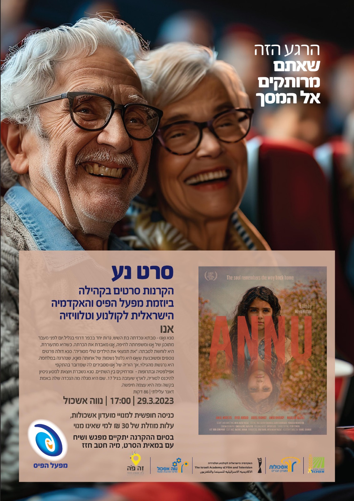 ביום ראשון הקרוב 29.3 בשעה 17:00 נקיים הקרנת סרט תחת הנחיות פיקוד העורף - בהרשמה מראש.