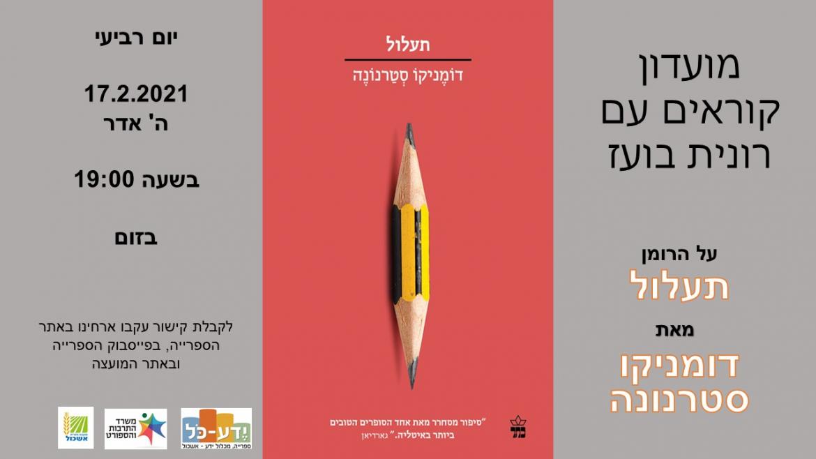 מועדון קוראים עם רונית בועז על הספר "תעלול" מאת דומניקו סטרנונה.