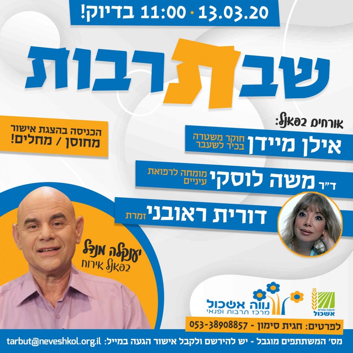 הוסף ללוח שנה 2021-03-13 00:00:00 2021-03-13 01:00:00 Asia/Jerusalem שבתרבות חוזרת ! למידע מלא: https://eshkol.info/events/238/ נווה אשכול