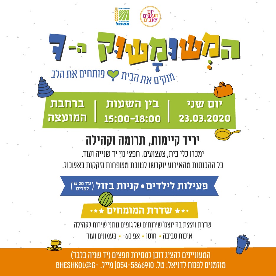 הוסף ללוח שנה 2020-03-23 00:00:00 2020-03-23 01:00:00 Asia/Jerusalem משומשוק למידע מלא: https://eshkol.info/events/35/ רחבת מועצה אזורית אשכול