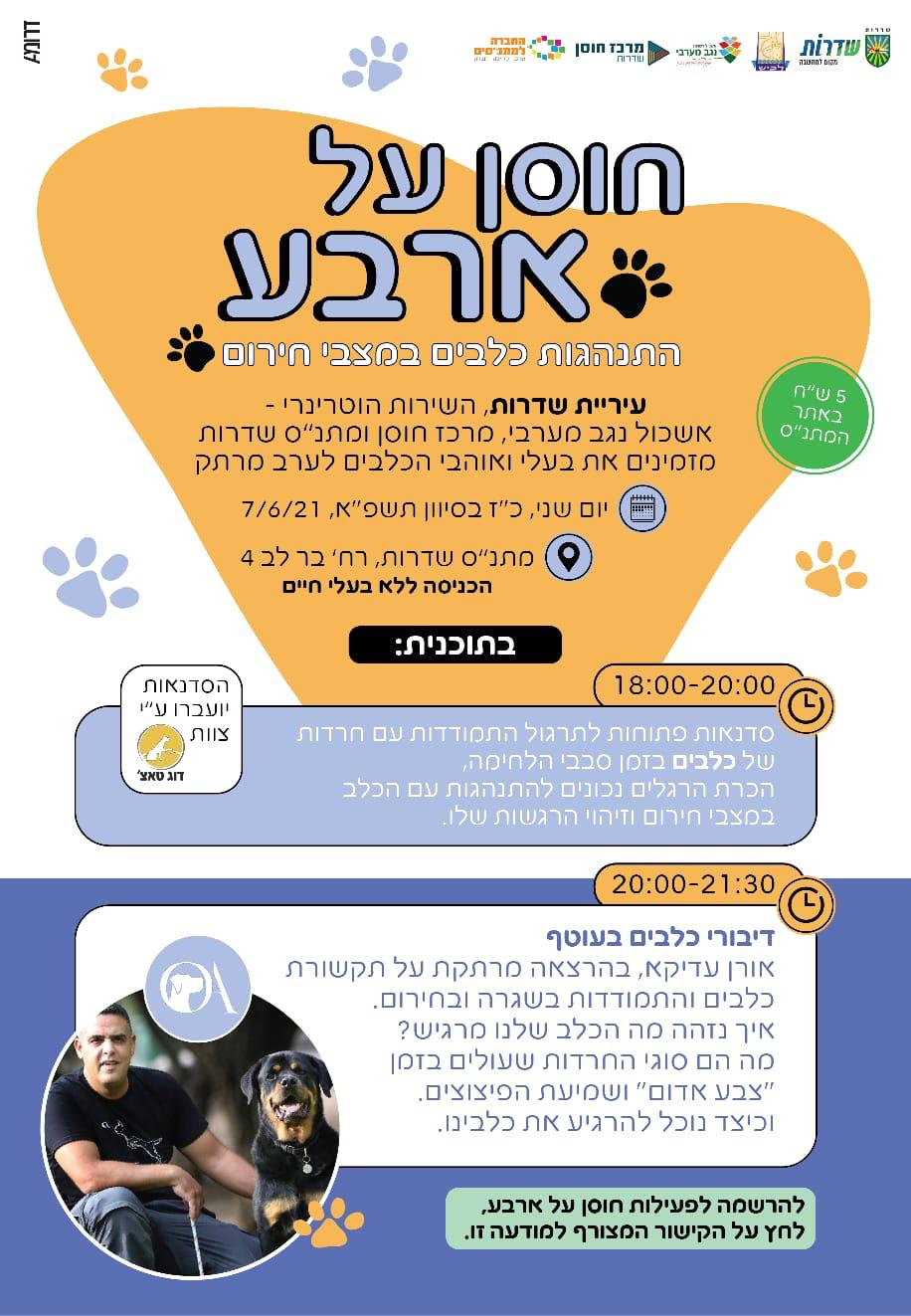 איך להקל עליהם? איך נזהה מה הם מרגישים? מה לעשות במקרה חירום ועוד מלא מידע חשוב על דיבורי כלבים בעוטף בהרצאה מרתקת!