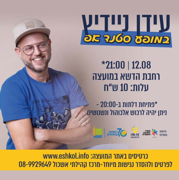 הוסף ללוח שנה 2021-08-12 00:00:00 2021-08-12 01:00:00 Asia/Jerusalem עידן ניידיץ - מופע סטנד אפ למידע מלא: https://eshkol.info/events/387/ רחבת הדשא - אולם תרבות אשכול