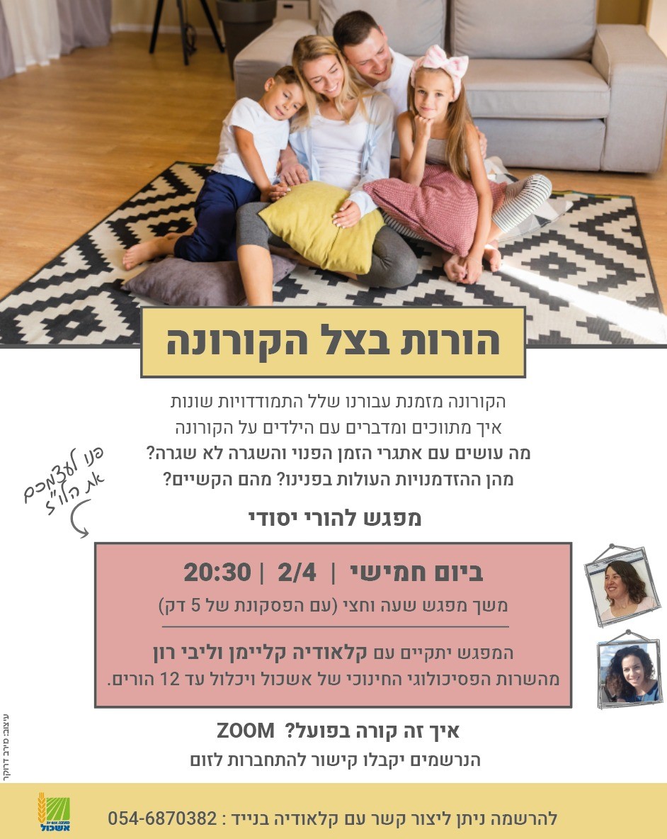 הוסף ללוח שנה 2020-04-02 00:00:00 2020-04-02 01:00:00 Asia/Jerusalem הורות בצל הקורונה למידע מלא: https://eshkol.info/events/39/ ZOOM