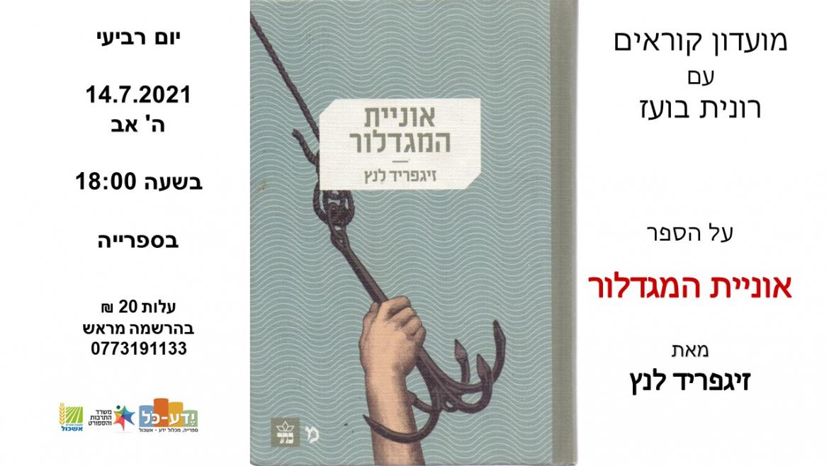הוסף ללוח שנה 2021-07-14 00:00:00 2021-07-14 01:00:00 Asia/Jerusalem מועדון קוראים - אוניית המגדלור למידע מלא: https://eshkol.info/events/408/ ספריית ידע כל