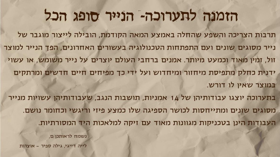 הוסף ללוח שנה 2021-08-27 00:00:00 2021-08-27 01:00:00 Asia/Jerusalem הנייר סופג הכל למידע מלא: https://eshkol.info/events/443/ גילדה