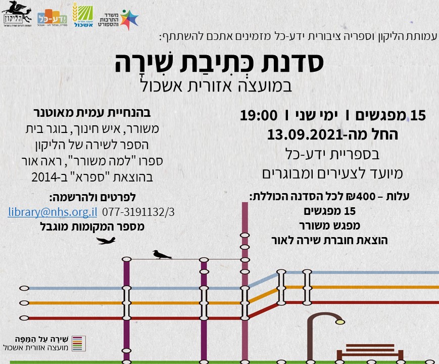 הוסף ללוח שנה 2021-09-13 00:00:00 2021-09-13 01:00:00 Asia/Jerusalem סדנת כתיבת שירה למידע מלא: https://eshkol.info/events/449/ ספריית ידע כל