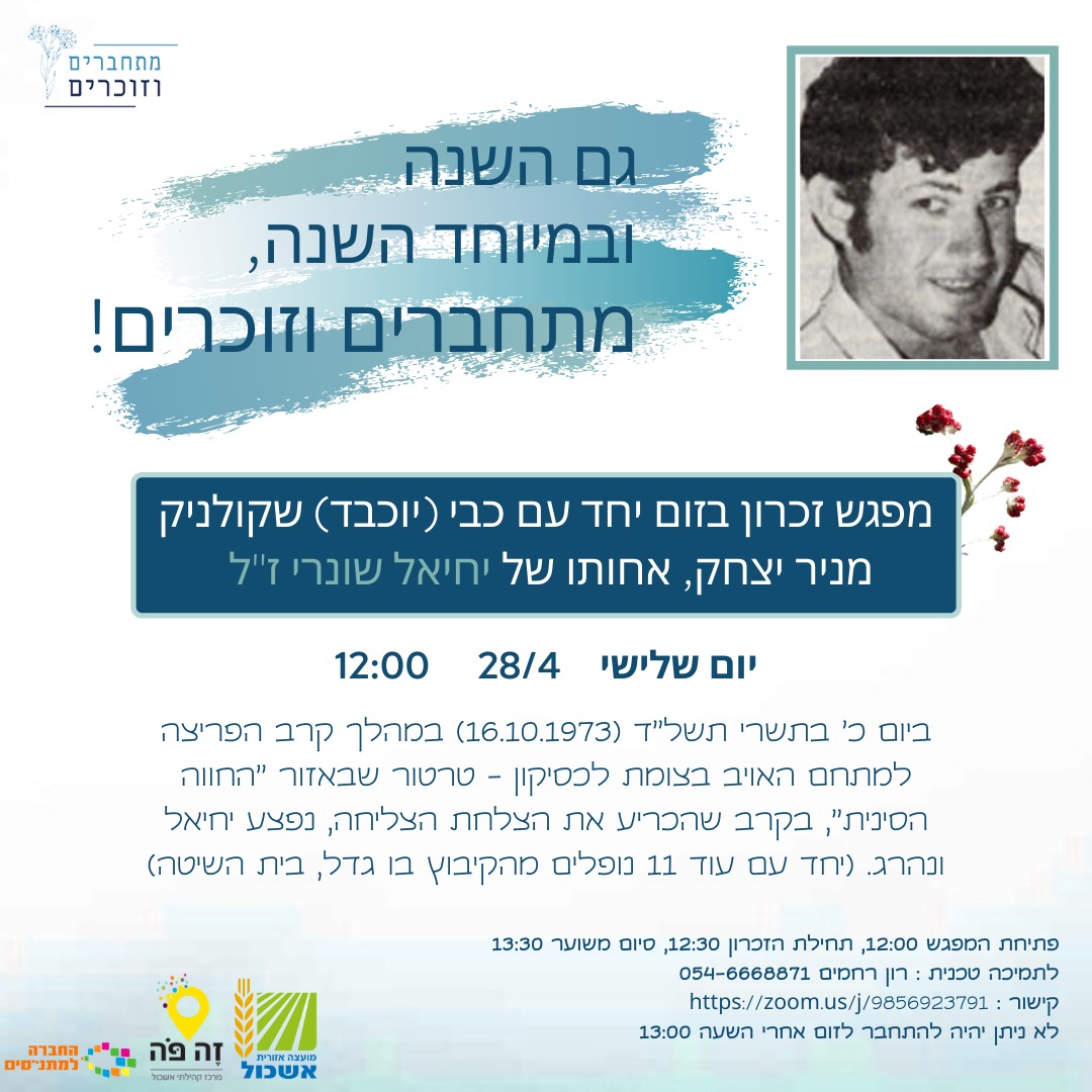 מתחברים וזוכרים את יחיאל שונרי ז"ל, בן קיבוץ בית השיטה ושיחה אישית עם אחותו כבי שקולניק, גזברית המועצה מקיבוץ ניר יצחק
