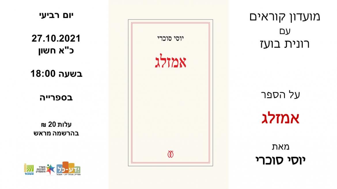 מועדון קוראים עם רונית בועז- על הספר אמזלג מאת יוסי סוכרי