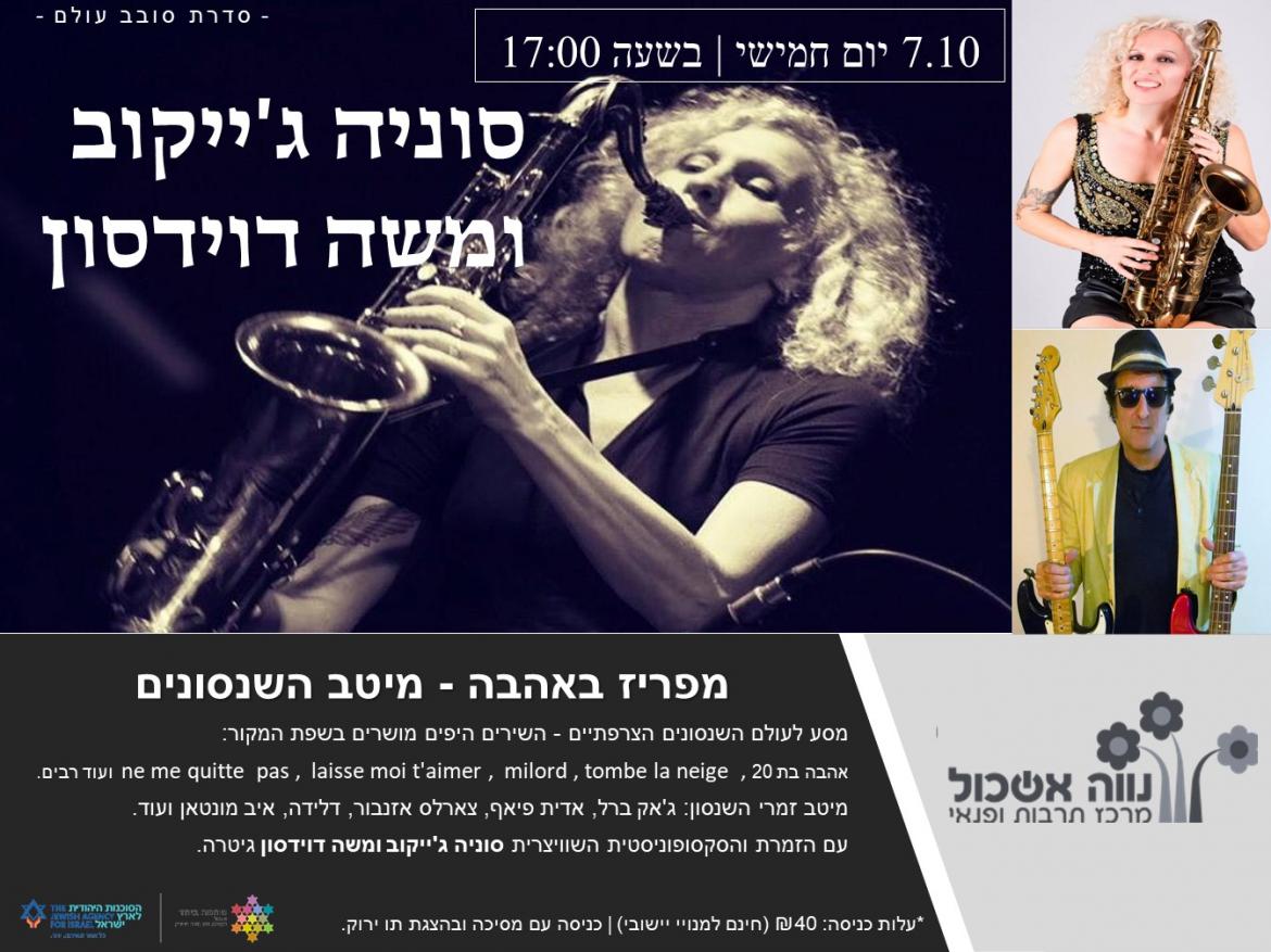 הוסף ללוח שנה 2021-10-07 00:00:00 2021-10-07 01:00:00 Asia/Jerusalem סוניה ג'ייקוב ומשה דוידסון למידע מלא: https://eshkol.info/events/473/ נווה אשכול