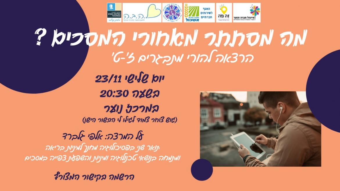 הוסף ללוח שנה 2021-11-23 00:00:00 2021-11-23 01:00:00 Asia/Jerusalem מה מסתתר מאחורי המסכים ? למידע מלא: https://eshkol.info/events/514/ מרכז נוער (גוש צוחר, צמוד לבשור הישן)