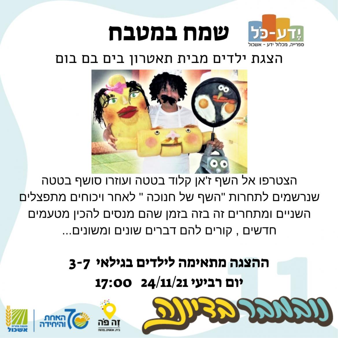 הוסף ללוח שנה 2021-11-24 00:00:00 2021-11-24 01:00:00 Asia/Jerusalem הצגת ילדים - שמח במטבח למידע מלא: https://eshkol.info/events/518/ דיונה