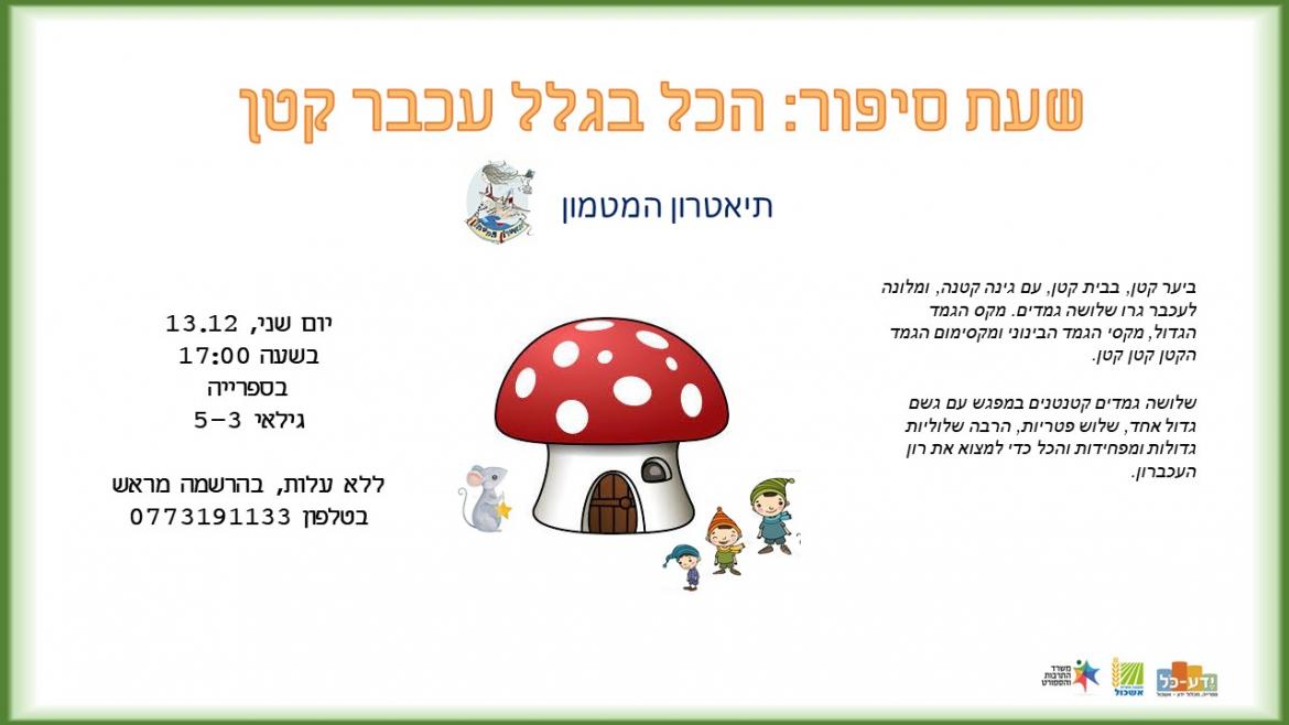 הוסף ללוח שנה 2021-12-13 00:00:00 2021-12-13 01:00:00 Asia/Jerusalem שעת סיפור - הכל בגלל עכבר קטן למידע מלא: https://eshkol.info/events/526/