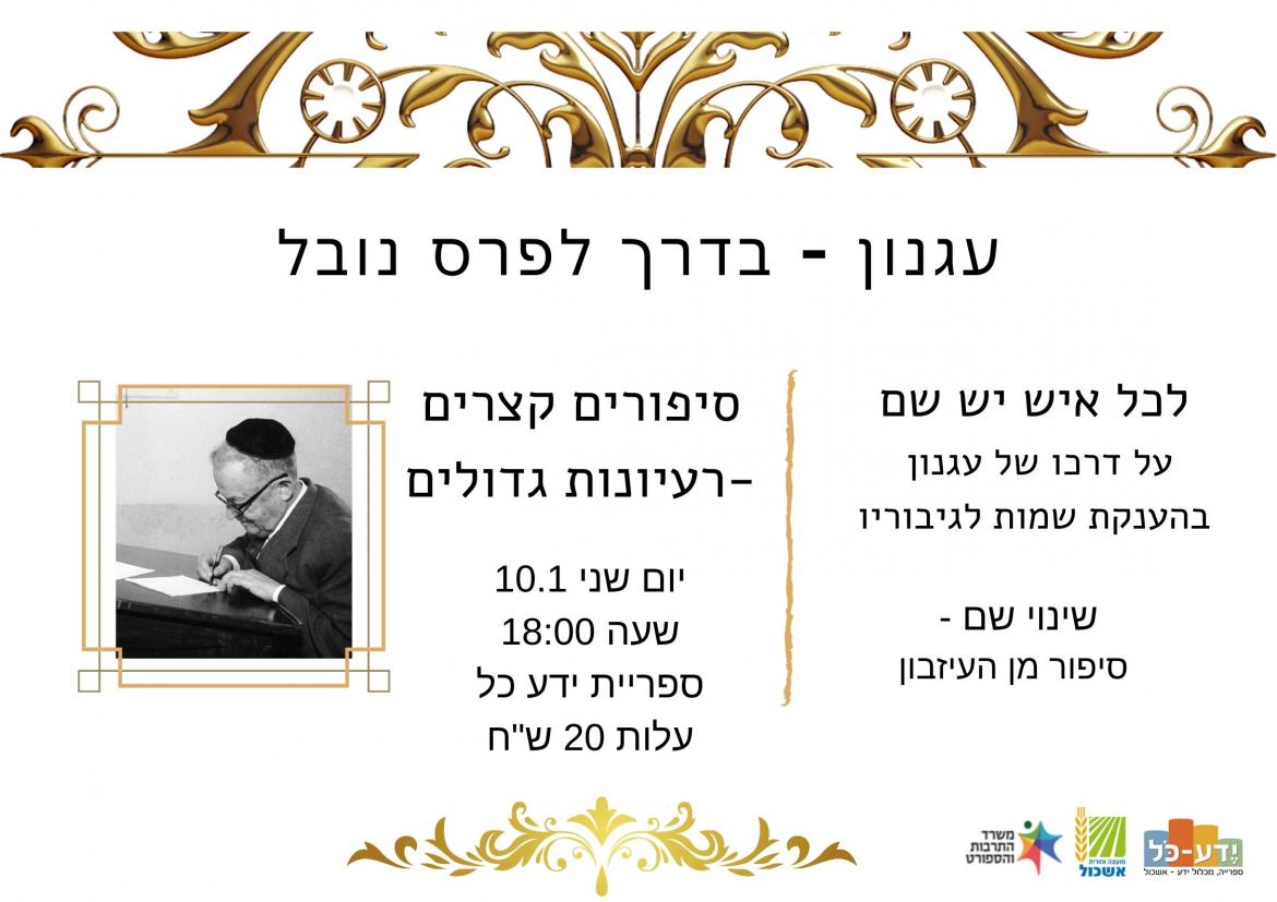 הוסף ללוח שנה 2022-01-10 00:00:00 2022-01-10 01:00:00 Asia/Jerusalem עגנון - בדרך לפרס נובל למידע מלא: https://eshkol.info/events/544/