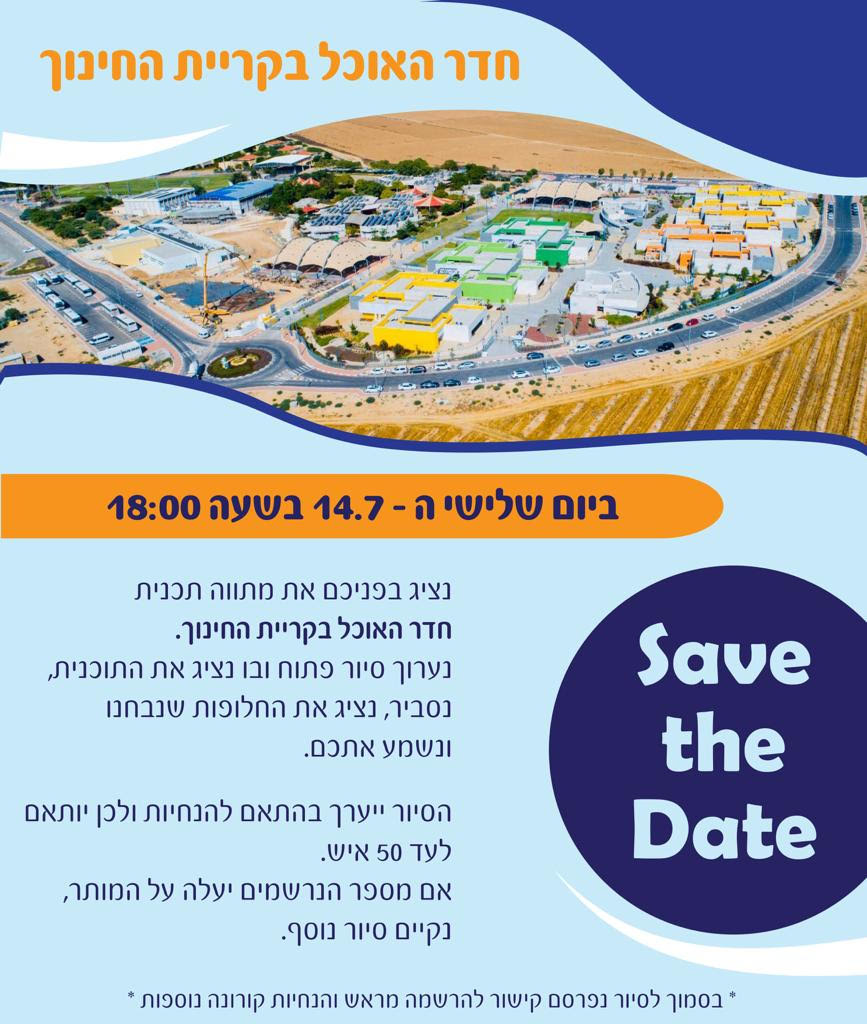 *נדחה*- הצגת מתווה חדר האוכל בקריית החינוך